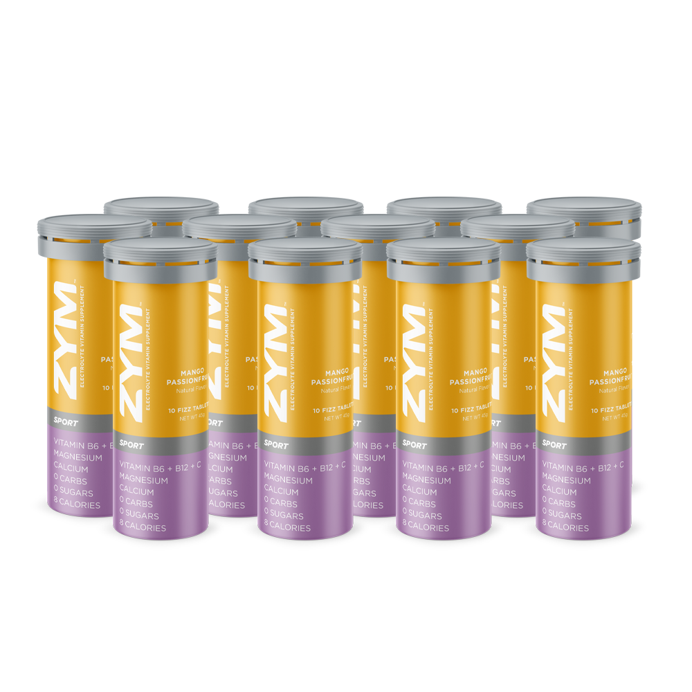 ZYM MANGO PASSIONFRUIT, with natural mango flavor, has a light tastes of mango with a pinch of intense passionfruit, and is designed to combat fatigue, muscle cramps and lactic acid build-up. This is an Electrolyte Vitamin Supplement, containing better ingredients, dissolves faster, contains no sugar, has added vitamins, and tastes far better than any electrolyte tablet on the market. Truly, the taste of ZYM SPORT blows away the competition.